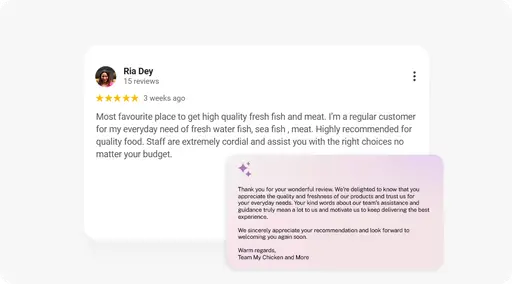 "Customer feedback is something we take very seriously at My Chicken and More. With 35+ outlets, handling reviews manually across locations was challenging. The centralized dashboard and AI-powered responses now help us stay responsive to every customer."
