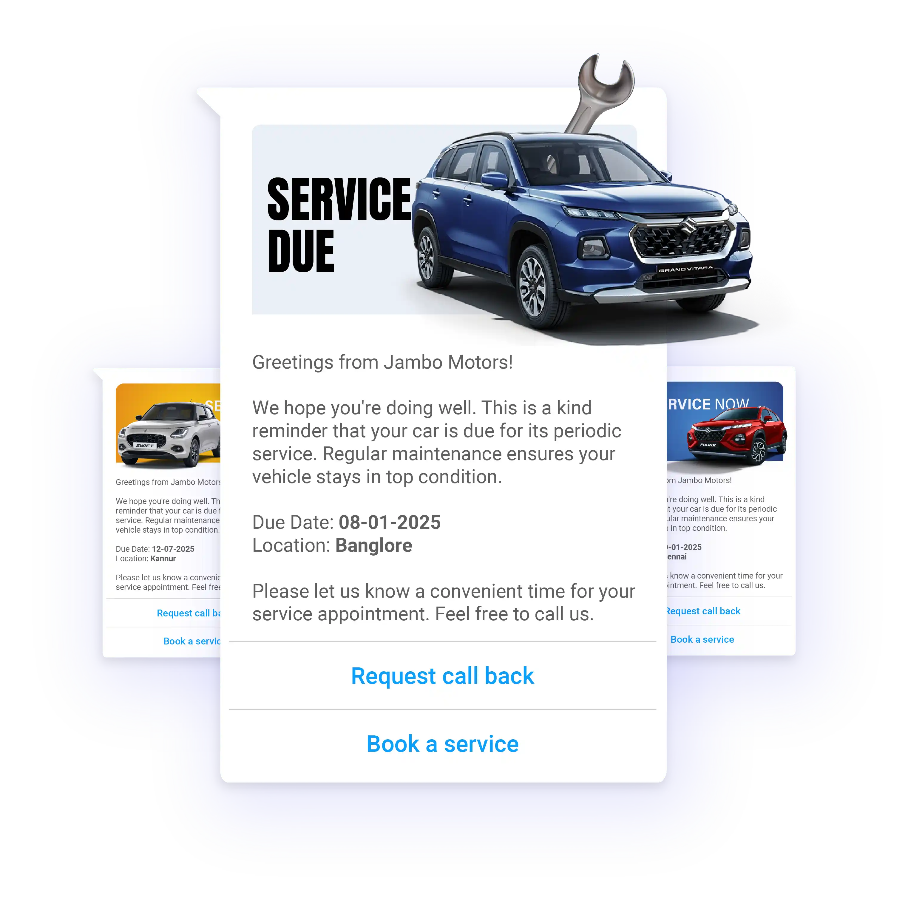 Send timely service reminders or event notifications to ensure no opportunity is missed. Frequent nudges help customers act promptly, even at the last minute.